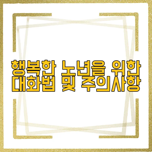 노년의 삶은 단순히 나이가 들어 가는 것만이 아닌 풍요로운 인생의 한 단계라고 할 수 있습니다. 이 시기에는 이전 단계와는 다른 다양한 변화와 도전이 찾아오지만, 행복하고 의미 있는 삶을 위해서는 긍정적인 대인관계 유지가 매우 중요합니다. 그렇다면 행복한 노년을 위해 어떤 대화법과 주의사항들이 필요할까요?